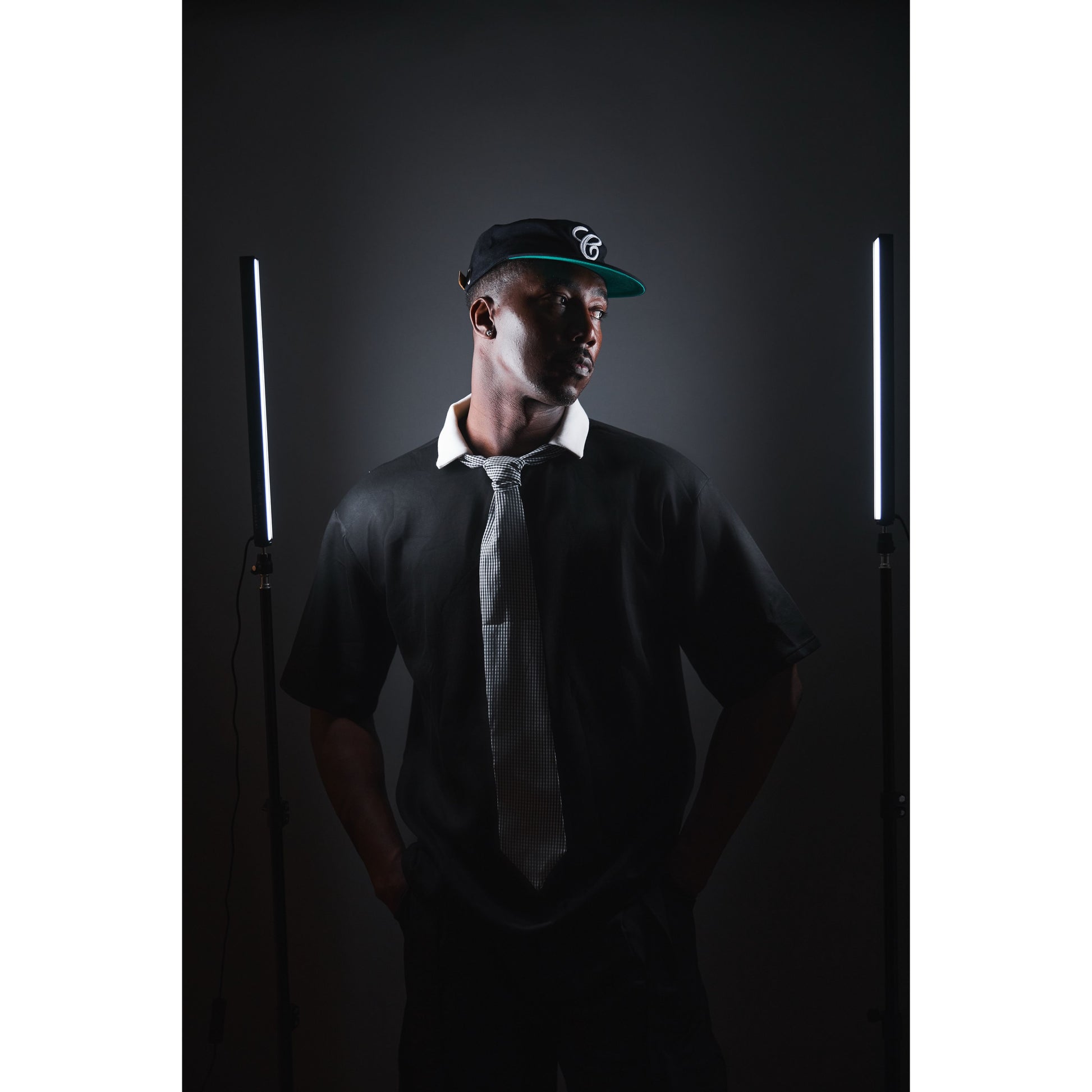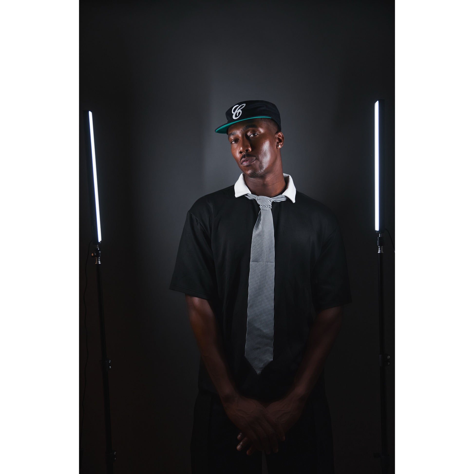 Oversized thick black top with removable tie. Sweatshirt material. Model wearing Medium.
